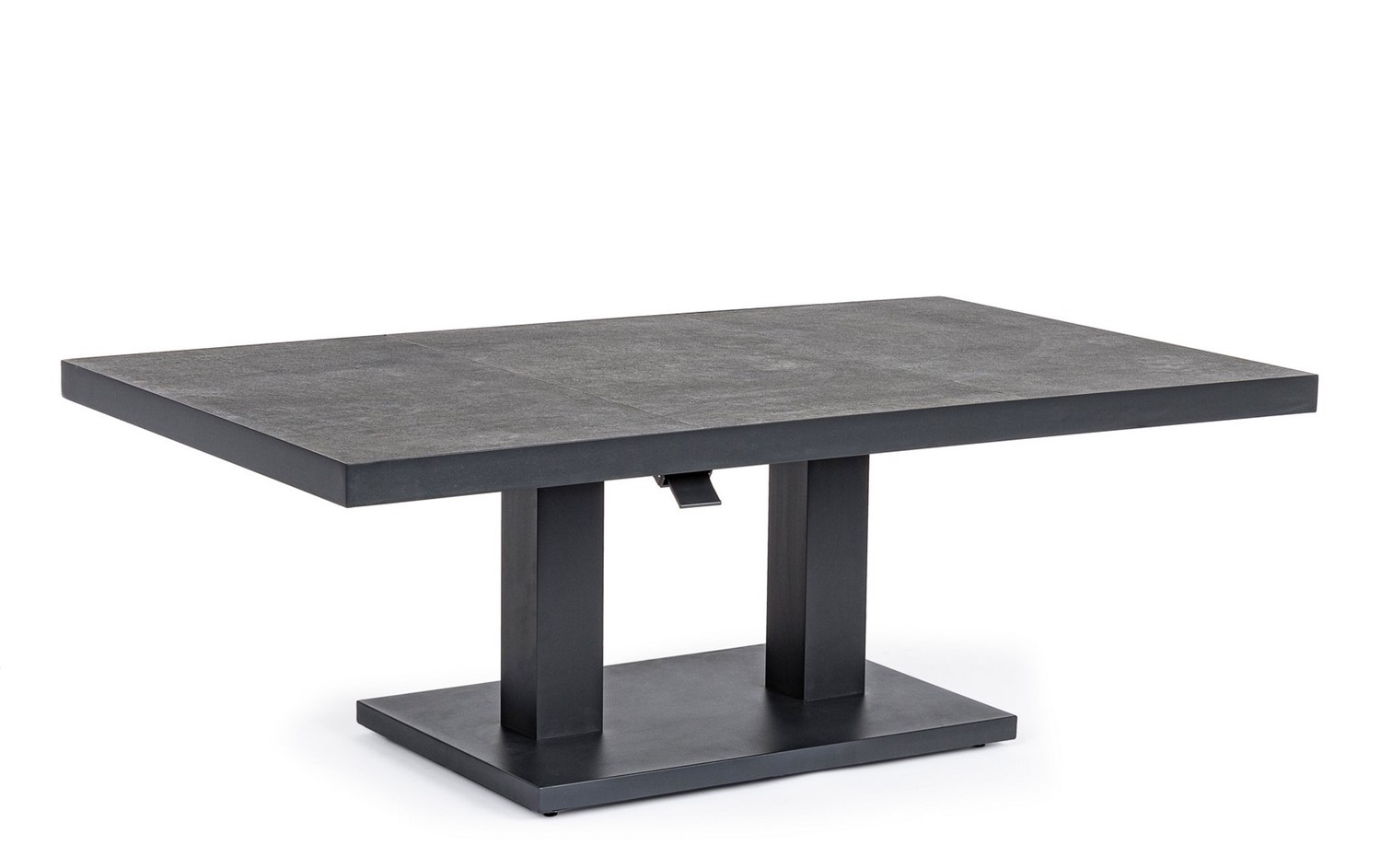 Stół TRUMAN to mebel o podwójnej funkcji – dzięki regulowanej wysokości może służyć zarówno jako stolik kawowy, jak i jadalniany. Jego antracytowe wykończenie nadaje mu elegancji i uniwersalności.