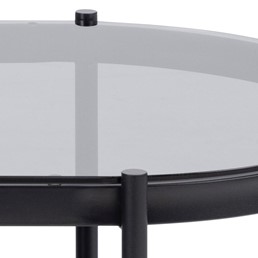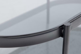 Stół Bayonne ma metalową podstawę malowaną proszkowo na czarno i 2 szklane boki. Szkło ma ciekawy wygląd, ponieważ jest lekko przydymione, co sprawia, że stół do jadalni jest ciekawszy. Szkło o grubości 6mm jest trwałe i wytrzymałe, a matowe wykończenie dodaje charakteru.