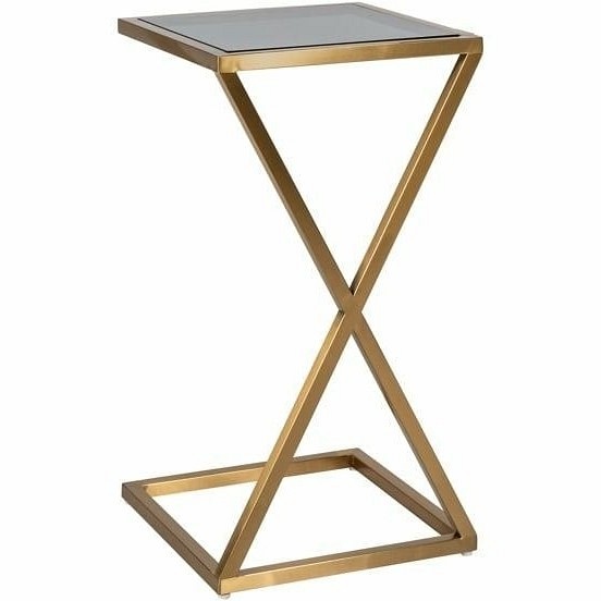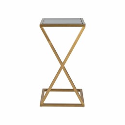 Ciemny szklany blat w połączeniu z podstawą w odcieniu szczotkowanego złota idealnie odnajdzie się w stylu Glamour. Swoim ciekawym kształtem, w którym ukryta jest rzymska dziesiątka, zwraca uwagę każdego miłośnika designu, jednocześnie zdobiąc przestrzeń.