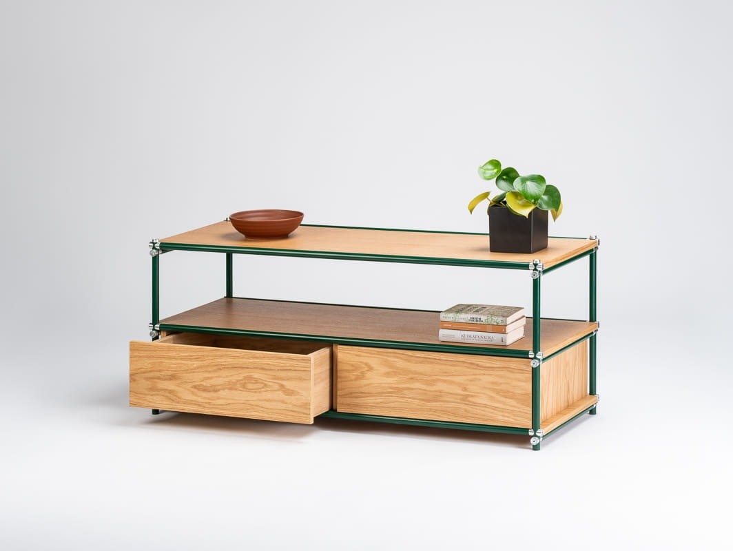 Prezentowany stolik to idealne rozwiązanie dla osób poszukujących stylowego i funkcjonalnego mebla do nowoczesnego wnętrza. Połączenie naturalnego dębowego forniru z prostą, minimalistyczną formą sprawia, że stolik doskonale wpisuje się w różne aranżacje – od nowoczesnych po klasyczne i skandynawskie. Wysokiej jakości materiały użyte do produkcji zapewniają trwałość, stabilność oraz estetyczny wygląd przez długi czas. Praktyczne szuflady z systemem push to open umożliwiają wygodne przechowywanie akcesoriów RTV, utrzymując porządek w salonie.