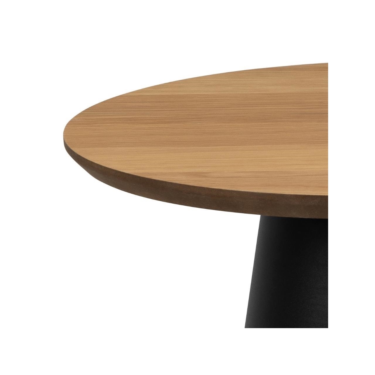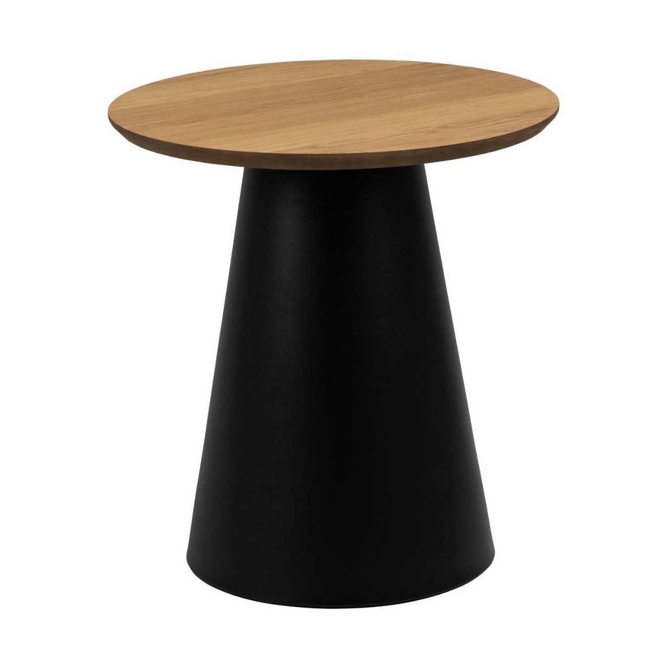 Stolik SOLI dąb/czarny to stylowy i funkcjonalny mebel, który łączy naturalne piękno drewna z nowoczesnym designem. Okrągły blat wykonany z dębowego forniru prezentuje ciepłe, naturalne słoje, a solidna, metalowa podstawa w kolorze czarnym dodaje mu industrialnego charakteru. Dzięki kompaktowym wymiarom, stolik Soli doskonale sprawdzi się w salonie, sypialni czy przy fotelu, służąc jako stolik kawowy, nocny lub pomocniczy. Jego prosty, ale elegancki design wprowadza do wnętrza przytulność i nowoczesny akcent.