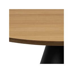 Stolik Soli dąb/czarny to elegancki i praktyczny mebel, który harmonijnie łączy ciepło naturalnego drewna z nowoczesnym, industrialnym stylem. Okrągły blat z dębowego forniru ukazuje piękno naturalnych słojów, a czarna, metalowa podstawa nadaje mu solidności i wyrazistości. Dzięki kompaktowym rozmiarom stolik Soli świetnie sprawdzi się w różnych przestrzeniach, od salonu po sypialnię. Jego prosty, a zarazem wyrafinowany design doda wnętrzu nowoczesnego i przytulnego charakteru.