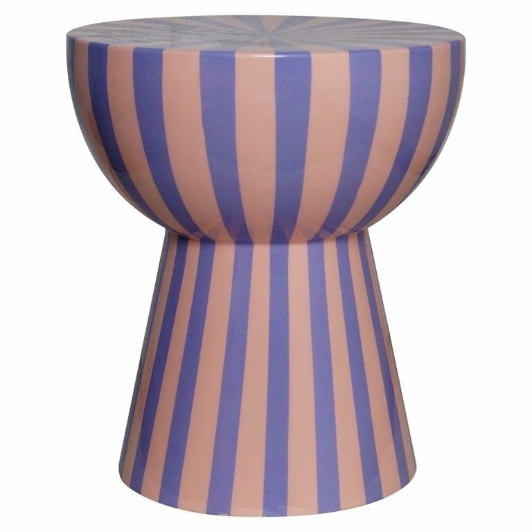 Stolik Valeria to uroczy i funkcjonalny element, który doda wnętrzom nowoczesnego uroku. Jego pastelowe wykończenie w odcieniach różu i fioletu tworzy subtelną, harmonijną paletę, która doskonale komponuje się w współczesnych aranżacjach. Geometryczny wzór sprawia, że stolik nie tylko pełni rolę użytkową, ale także jest wyrazistym detalem dekoracyjnym.