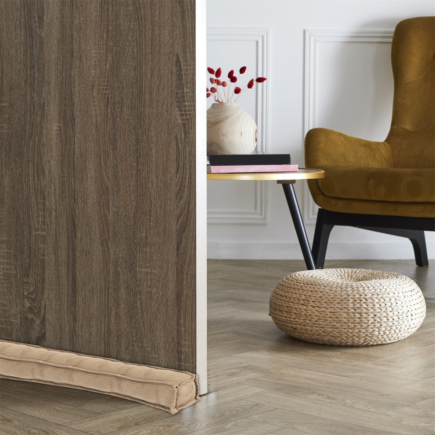 Wałek do drzwi to praktyczny dodatek, który skutecznie chroni ściany i drzwi przed uderzeniami, jednocześnie pełniąc funkcję dekoracyjną. Wykonany z miękkich, tekstylnych materiałów, takich jak sztruks i boucle, idealnie komponuje się z nowoczesnymi i przytulnymi wnętrzami. Stabilna konstrukcja zapewnia skuteczne blokowanie drzwi, a stonowana kolorystyka pozwala łatwo dopasować go do aranżacji pomieszczenia.