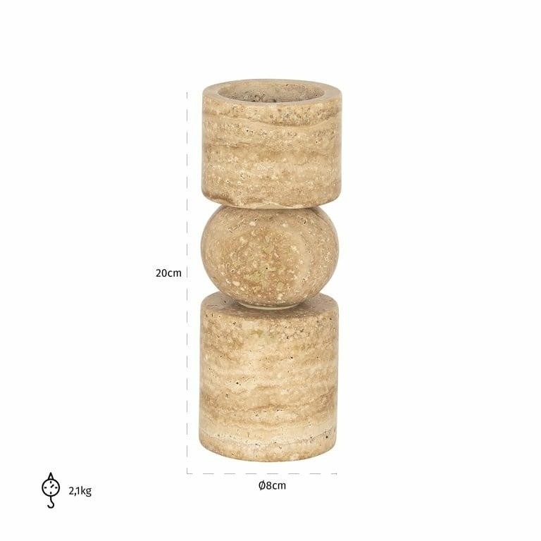 Świecznik Alaina II to elegancka dekoracja, która łączy surowy kamień z nowoczesnym designem. Jego naturalny, beżowy odcień i subtelne nieregularności podkreślają organiczny charakter materiału, wprowadzając do wnętrza atmosferę harmonii i spokoju. Dzięki swojej minimalistycznej formie doskonale komponuje się w aranżacjach skandynawskich, boho oraz rustykalnych, dodając każdemu pomieszczeniu wyjątkowego uroku.