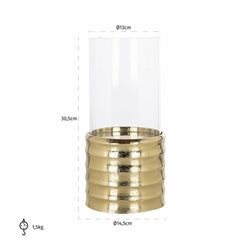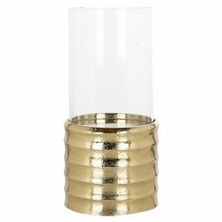 Świecznik Bodil to połączenie luksusowego designu i funkcjonalności. Złota podstawa z aluminium w kształcie falistych linii wprowadza do wnętrza elegancję, a szklana osłona subtelnie rozprasza światło świecy, tworząc przytulną atmosferę. Dzięki swojej uniwersalności, świecznik Bodil doskonale sprawdzi się na stole, półce czy komodzie, wnosząc do każdego pomieszczenia szyk i nowoczesny styl.
