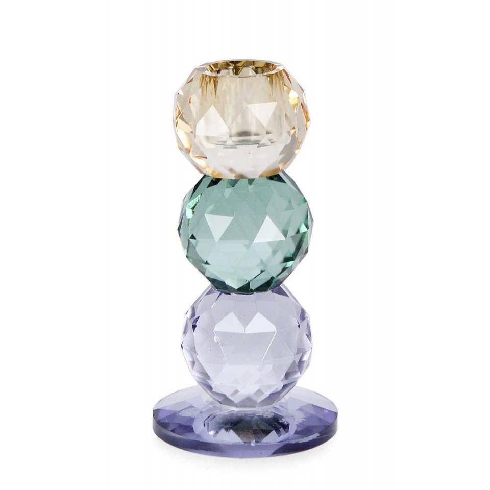 Świecznik ELRIK GL RO to wyjątkowa dekoracja, która zachwyca niepowtarzalnym charakterem. Jego forma oparta na trzech kulach, przypominających szlachetne kamienie, ustawionych jedna na drugiej i osadzonych na okrągłej podstawie, wprowadza do wnętrza nutę elegancji i artystycznego wyrafinowania. Subtelne przejścia kolorystyczne – od ciepłych po chłodniejsze tony – sprawiają, że świecznik pięknie odbija światło, tworząc nastrojową atmosferę. W całości wykonany z kryształu, stanowi synonim luksusu i ponadczasowego stylu.
