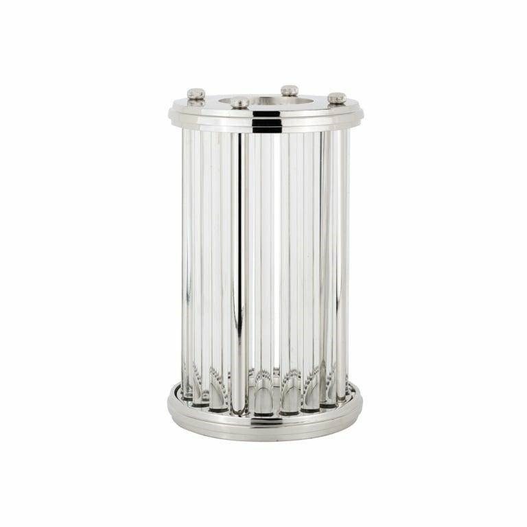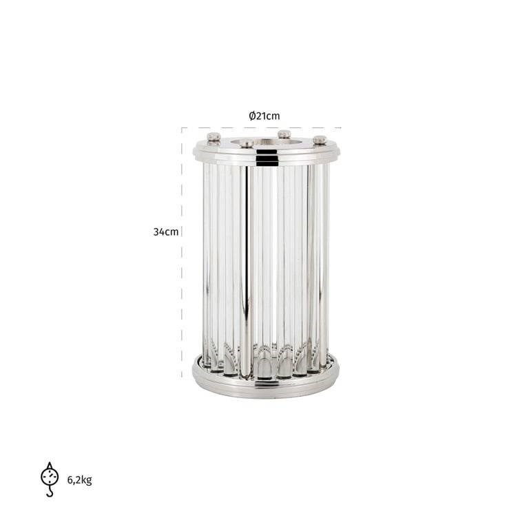 Świecznik EMERAY to połączenie nowoczesnego designu z klasyczną elegancją. Jego srebrne wykończenie i przezroczyste szkło sprawiają, że idealnie komponuje się z różnymi stylami wnętrzarskimi, od nowoczesnych po klasyczne.