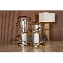 Świecznik Bodil to połączenie luksusowego designu i funkcjonalności. Złota podstawa z aluminium w kształcie falistych linii wprowadza do wnętrza elegancję, a szklana osłona subtelnie rozprasza światło świecy, tworząc przytulną atmosferę. Dzięki swojej uniwersalności, świecznik Bodil doskonale sprawdzi się na stole, półce czy komodzie, wnosząc do każdego pomieszczenia szyk i nowoczesny styl.