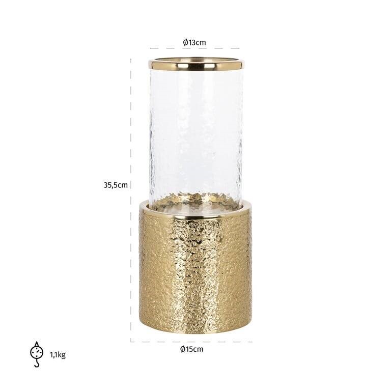 Pełny szyku i elegancji świecznik Marlou został wykonany z aluminium w szampańskim złotym kolorze i przezroczystego szkła.