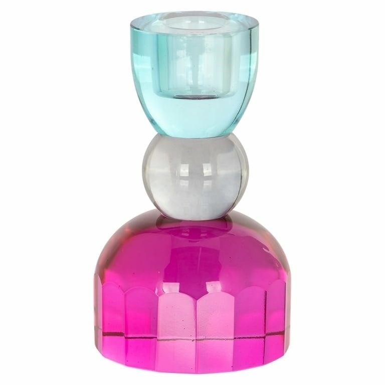 Świecznik Merlin to wyjątkowy element dekoracyjny, który łączy w sobie elegancję i nowoczesność. Jego kryształowo-szklana forma w połączeniu z oryginalnym, kolorowym wykończeniem sprawiają, że staje się on nie tylko funkcjonalnym, ale i artystycznym dodatkiem do wnętrza. Idealny do współczesnych aranżacji oraz jako stylowy pomysł na prezent.