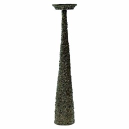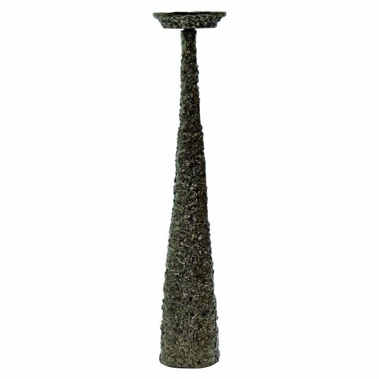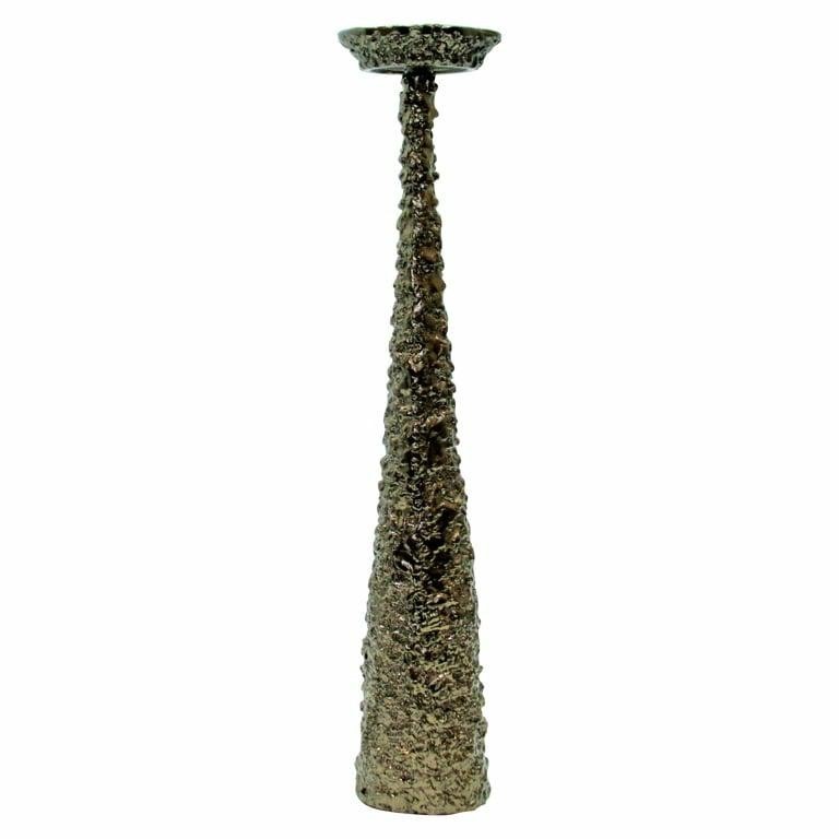 Świecznik Moan to elegancki dodatek, który wyróżnia się wyrafinowanym designem. Wykonany z aluminium o szczotkowanej powierzchni, z mosiężnymi akcentami, przyciąga uwagę unikatową, nieregularną fakturą, która nadaje mu rustykalny, ale jednocześnie luksusowy charakter. Moan jest dostępny w dwóch rozmiarach, co umożliwia efektowną aranżację przestrzeni, wprowadzając do nowoczesnych wnętrz subtelny złoty połysk i wyrafinowany styl.