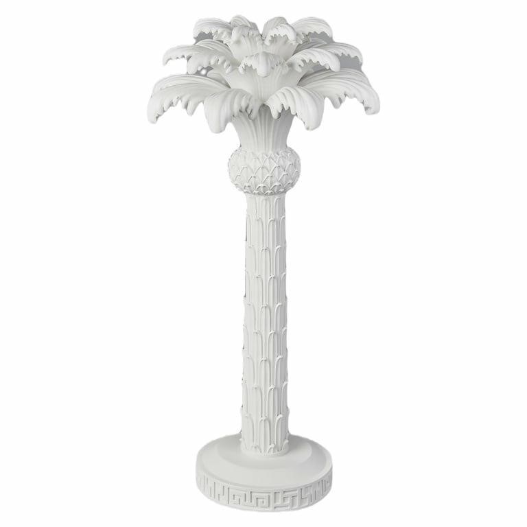 Świecznik Palma to wyjątkowa dekoracja, która przyciąga wzrok swoją egzotyczną formą inspirowaną roślinnością. Wykonany z wysokiej jakości żywicy, przedstawia stylizowaną palmę z detalicznymi liśćmi i ozdobnym pniem, wykończoną w eleganckim, matowym odcieniu. Dzięki swojemu tropikalnemu charakterowi idealnie wpisuje się w styl boho oraz eklektyczne aranżacje, wnosząc do wnętrza ciepły, egzotyczny akcent i nadając mu niepowtarzalny klimat.