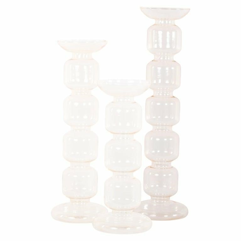 Świecznik Rabia to doskonałe połączenie funkcjonalności i estetyki. Jego delikatna, mleczna barwa i nowoczesna cylindryczna forma nadają wnętrzom lekkości oraz subtelnej elegancji. Dostępność w trzech różnych rozmiarach pozwala na kreatywne aranżacje – doskonale wyglądają ustawione razem, tworząc harmonijną kompozycję. Idealny wybór do wnętrz w stylu minimalistycznym lub skandynawskim, gdzie prostota i wyrafinowanie są kluczowe.