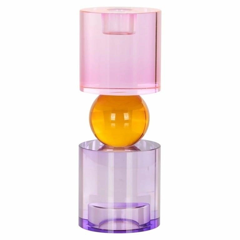 Świecznik ZAHRA L to niezwykle efektowny i unikalny świecznik, który z pewnością przyciągnie uwagę dzięki swoim geometrycznym kształtom oraz kolorowemu wykończeniu. Jest to propozycja dla osób ceniących oryginalne i nietuzinkowe dodatki do wnętrz. Wykonany w całości ze szkła, świecznik Zahra emanuje elegancją i nowoczesnym stylem, który doskonale wpasuje się w różnorodne aranżacje.
