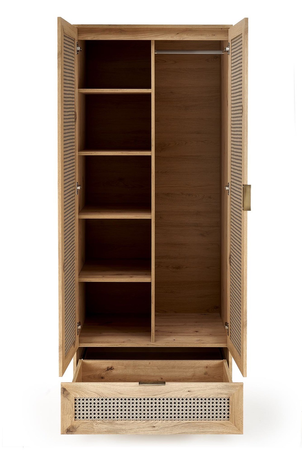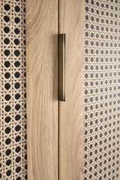 Szafa z kolekcji Borneo, to nowoczesny a zarazem klasyczny mebel. Wykonany z płyty meblowej w kolorze dąb artisan z modnymi wstawkami ze wzorem plecionki wiedeńskiej jest idealnym wyborem dla Ciebie. Jest praktycznym rozwiązaniem dla wielu osób, które szukają miejsca do przechowywania swoich rzeczy. Mamy w niej również drążek, na którym możemy powiesić ubrania oraz półki. To idealna propozycja dla osób, które cenią sobie naturalne wykończenia, a plecionka wiedeńska to element, który dodaje meblom elegancji i nowoczesności.