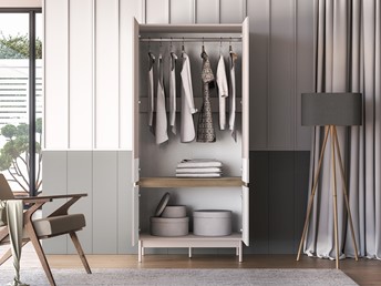 Szafa z serii DUNEA to przykład minimalistycznego wzornictwa opartego na naturalnych materiałach. Wykonana z litego drewna sosnowego, wyróżnia się prostą sylwetką, która wpisuje się zarówno w styl skandynawski, jak i rustykalny. Dwuskrzydłowe drzwi kryją przestronne wnętrze z półkami i drążkiem, idealne do przechowywania odzieży lub tekstyliów. Dzięki neutralnej kolorystyce i braku zdobień, szafa stanowi doskonałą bazę aranżacyjną do sypialni lub przedpokoju.