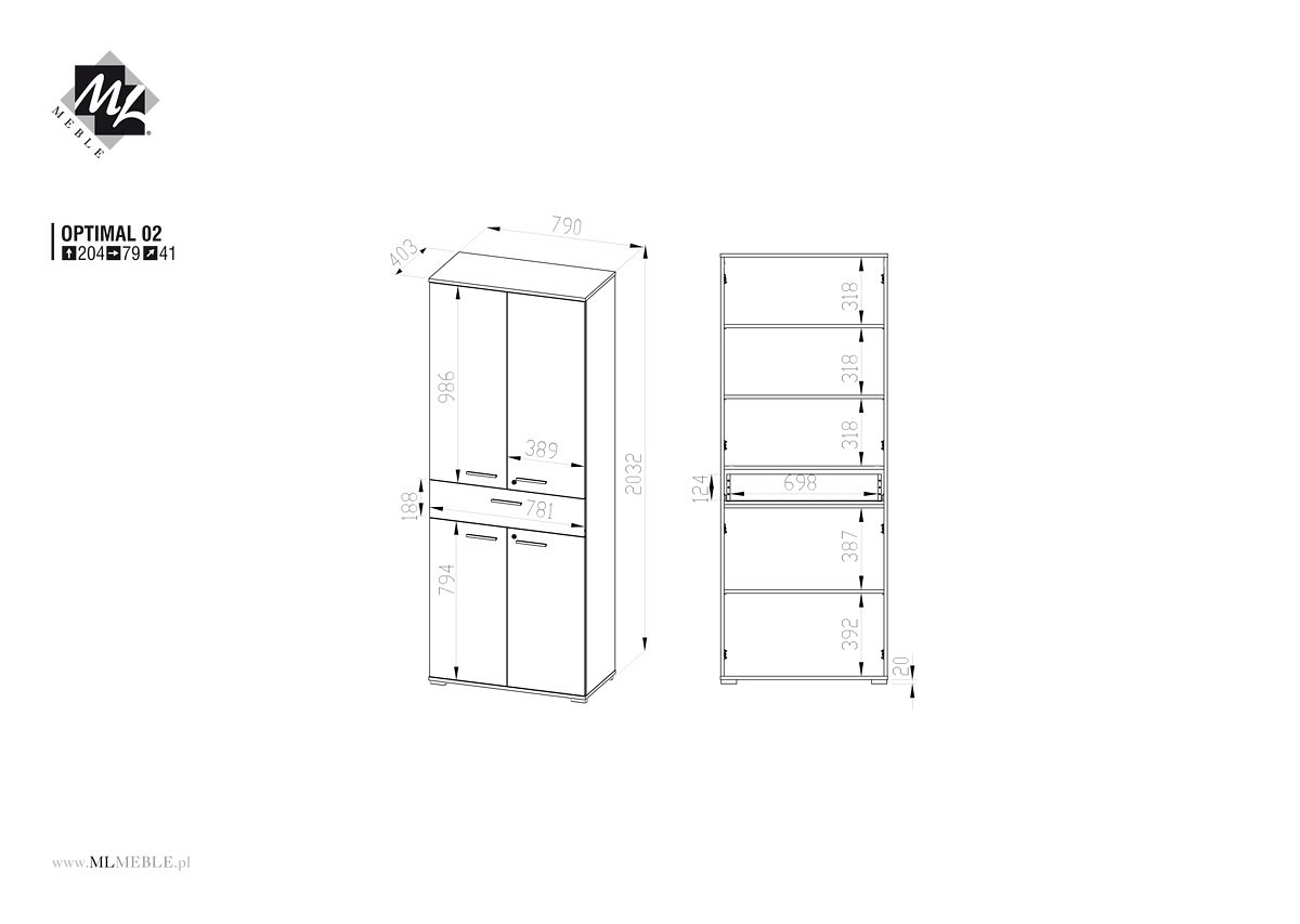 Szafa Optimal 02 to zestaw czterech praktycznych szafek oraz komody. Taka forma pozwala na łatwe i szybkie uporządkowanie dokumentów czy akcesoriów. Wykonana została zwysokiej jakości płyty laminowanej o grubości 22 mm i obrzeżem ABS 2 mm umieszona na stabilnych, metalowych podstawkach. Kolekcja Optimal stworzona została z myślą o biurach, gabinetach i innych miejscach pracy. Charakteryzuje ją nie tylko nowoczesny, elegancki design, ale też zastosowane w części zamki, dzięki którym możemy mieć pewność, że wszelkie ważne dokumenty etc, nie dostaną się w niepowołane ręce.
