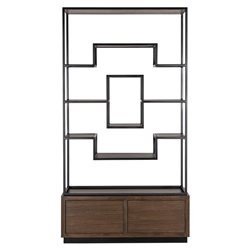 - Elegancka szafa z wieloma półkami i wysuwanymi szufladami