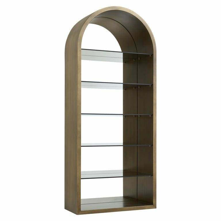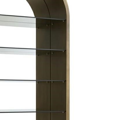 Szafa ścienna BOWIC to elegancki mebel, który łączy funkcję przechowywania z dekoracyjnością. Wykończona w odcieniu szczotkowanego złota, doskonale wpisuje się w styl glamour i art déco. Szklane półki pozwalają efektownie wyeksponować ozdobne przedmioty, naczynia lub kolekcje, a solidna konstrukcja zapewnia stabilność i długowieczność. Idealnie sprawdzi się w salonie, jadalni czy ekskluzywnym gabinecie.