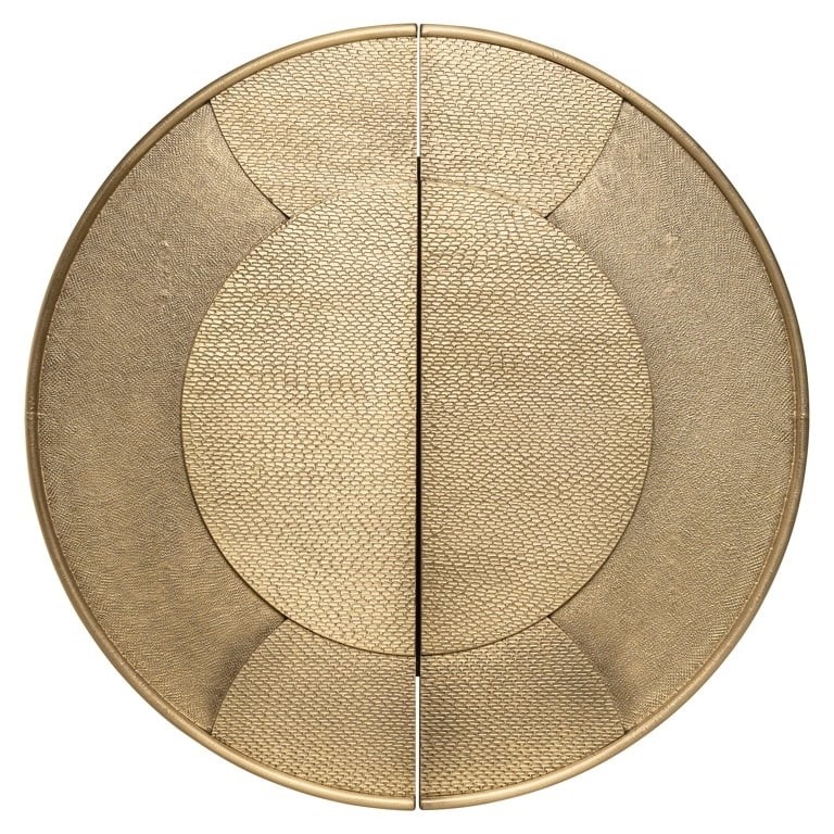 Luksusowy, elegancki wygląd zapewniają oryginalne drzwiczki w kształcie okręgu o złotym wykończeniu.
