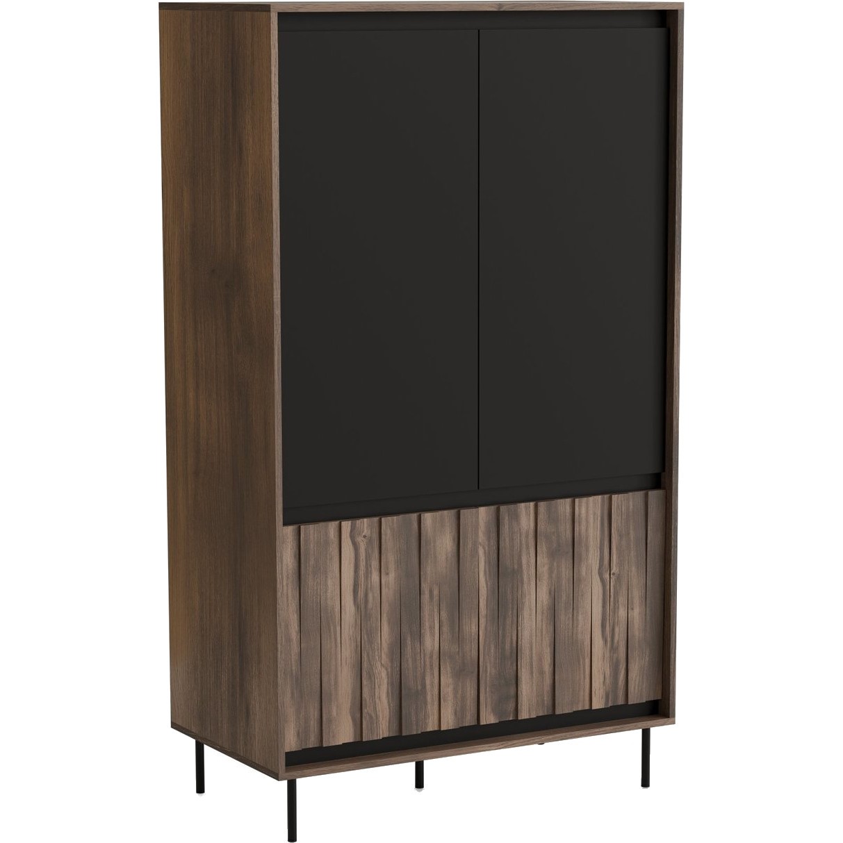 Szafa z kolekcji Swing to nie tylko praktyczne rozwiązanie do przechowywania, ale również prawdziwa ozdoba przestrzeni, która dodaje Twojemu wnętrzu niepowtarzalnego uroku. Jej fronty w orzechowym wykończeniu ze strukturą 3D nadają meblom unikalny i efektowny wygląd, przyciągając wzrok swoim wyjątkowym detalem. Matowa czerń, zestawiona z orzechowymi detalami, tworzy harmonijną kompozycję, nadając pomieszczeniu nowoczesnego i stylowego charakteru. To połączenie klasycznej elegancji z nowoczesnym designem, które nadaje wnętrzu wyjątkowego charakteru i stylu.Stalowe nóżki dodają szafie lekkości i finezji, podkreślając jej delikatny, unoszący się charakter. To nie tylko funkcjonalny mebel, ale również wyjątkowy element designu, który wzbogaca Twoje wnętrze, nadając mu wyjątkowego charakteru i elegancji.