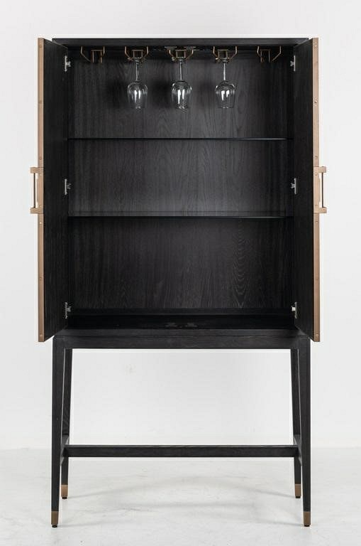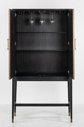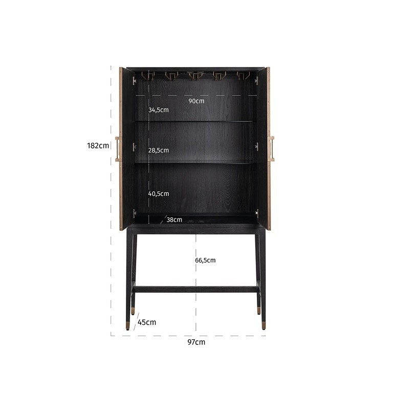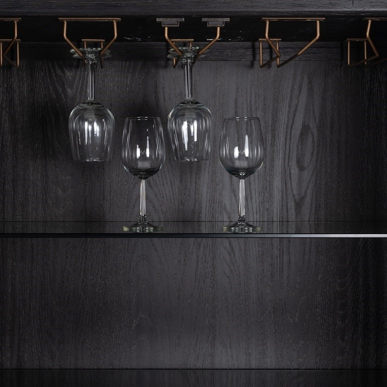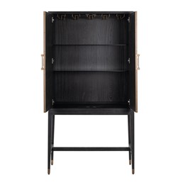 Model szafki barowej BLOOMINGVILLE to prawdziwa ozdoba każdego salonu lub jadalni. Wykonana wykonana z forniru dębowego, skóry PU i matowych złotych metalowych detali, została skonstruowana z dbałością o szczegóły. Uwagę zwraca także piękny, stylowy design, który uzupełnia się zarówno o ozdobne klamki, jak i o oryginalne nóżki. Szafka barowa Bloomingville dzięki wbudowanym wieszakom na kieliszki jest produktem wielofunkcyjnym i świetnie sprawdzi się w kuchni/ jadalni czy restauracji/ barze.
