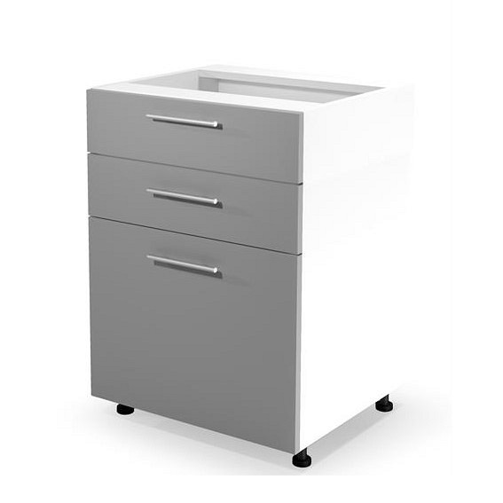 Funkcjonalna szafka systemu mebli modułowych Vento. Szafka wyposażona jest w praktyczne szuflady. Szuflady są integralną częścią mebli kuchennych. W szufladach zmieścimy wszystko, od przyborów kuchennych po garnki, talerze i kubki. Szafka kuchenna 60 VENTO D3S-60/82 to szafka składająca się z trzech pojemnych szuflad. Mechanizm Hettich oraz mechanizm otwierania szuflad Linken System to inwestycja w wygodne meble. Szuflady szafek zamykają się miękko i prawie bezgłośnie. Miękkie zamknięcie nie tylko zwiększa wygodę użytkowania, ale także zapewnia dłuższą żywotność produktu. Prezentowany model szafki to doskonały wybór dla każdego, kto ceni sobie funkcjonalne, ponadczasowe i solidne meble.