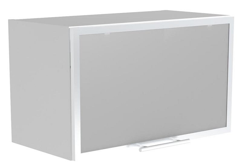 Szafka okapowa z witryną o szerokości 60 cm i wysokości 36 cm. Korpus szafki wykonany jest z płyty wiórowej laminowanej w kolorze dąb craft, front natomiast to szkło mleczne w ramce aluminiowej. Odporna na wilgoć, zarysowania i inne uszkodzenia mechaniczne.