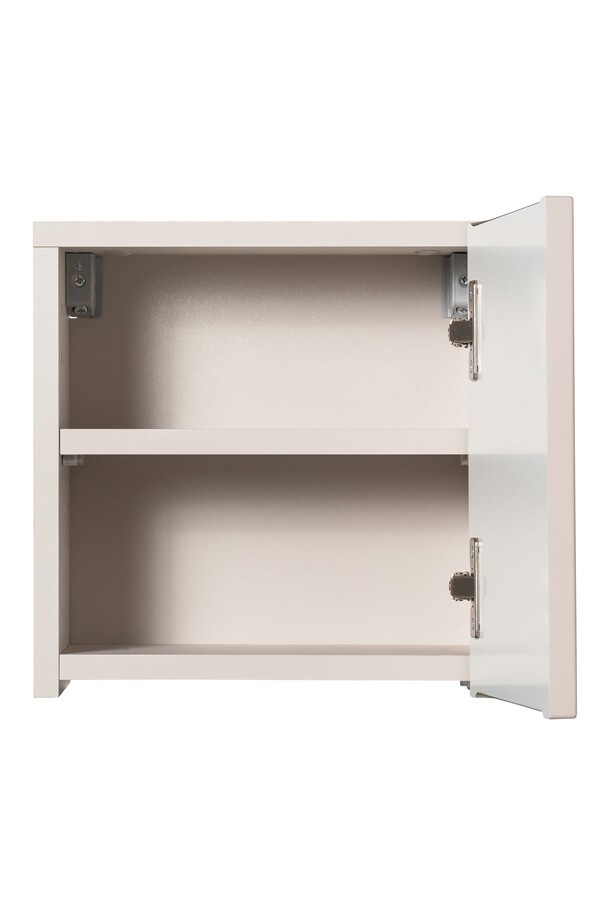 Szafka górna Qubik to doskonałe uzupełnienie zestawu meblowego w mniejszej przestrzeni. Dzięki swoim kompaktowym wymiarom idealnie sprawdza się w codziennym użytkowaniu, oferując miejsce na kosmetyki i drobne akcesoria. Prosta forma i stonowana kolorystyka nadają jej uniwersalnego charakteru.