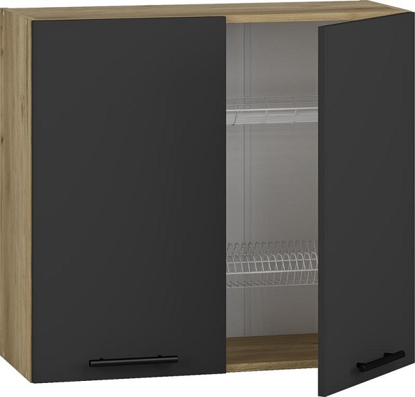 Modułowa szafka kuchenna o szerokości 80 cm z kolekcji mebli Halmari Vento. Szafka wyposażona jest w suszarkę do naczyń, która umieszczona nad zlewozmywakiem pozwala łatwo i szybko zapakować pranie. Szafka górna posiada regulowane wieszaki, które umożliwiają odpowiednie zawieszenie szafki na drążku. W szafce zastosowano zawiasy z mechanizmem cichego domykania, dzięki czemu zapobiegamy głośnemu hałasowaniu drzwi podczas użytkowania. Metalowy uchwyt o długości 128 mm ułatwia otwieranie i zamykanie szafki. Korpus szafki kuchennej 80 VENTO GC-80/72 ma białą matową powierzchnię z płyty wiórowej laminowanej oraz beżowy połyskujący front z płyty MDF z folią. Grubość płyty MDF oraz płyty laminowanej wynosi 16 mm.