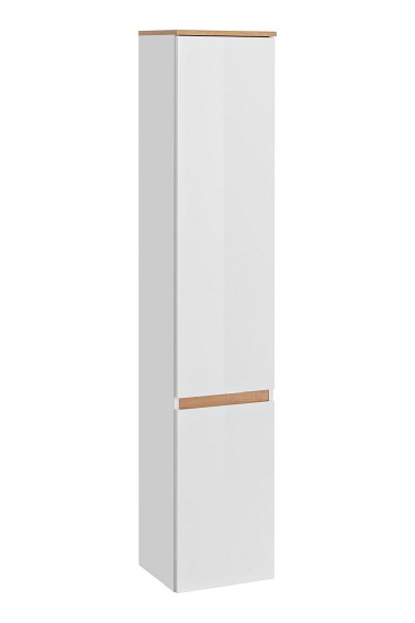 Szafka łazienkowa Platinum 800 to szafka kolumnowa o wysokości 176 cm i szerokości 35 cm. Idealny do przechowywania kosmetyków do makijażu i środków czyszczących, których potrzebuje każda łazienka. Fronty szafek wykonane są z białego laminatu, natomiast fronty z białej błyszczącej płyty MDF z wstawkami w kolorze złotego dębu. Idealna szafka do nowoczesnej łazienki, która rozjaśni wnętrze i wprowadzi czysty i świeży efekt. Frezowane uchwyty zdobią szafki, ułatwiając otwieranie i zamykanie.