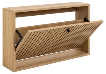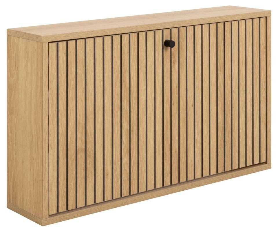 Szafka na buty Albany wisząca w kolorze naturalnego dębu to elegancki i praktyczny mebel, idealny do przedpokoju czy garderoby. Wykonana z wysokiej jakości drewna, zapewnia trwałość i stylowy wygląd. Jej kompaktowa konstrukcja umożliwia oszczędność miejsca, a jednocześnie oferuje wystarczającą przestrzeń do przechowywania butów. Szafka posiada drzwiczki z lamelami, które dodają nowoczesnego charakteru. Wymiary szafki to: wysokość 71,6 cm, szerokość 43 cm i głębokość 17 cm. Jej naturalny kolor dębu harmonizuje z różnymi stylami wnętrz, wprowadzając do nich ciepło i elegancję.