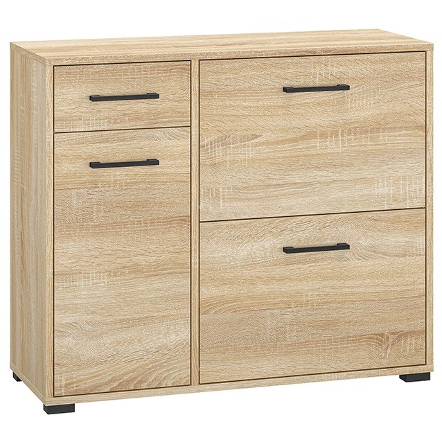 Szafka na buty to praktyczny mebel, który doskonale sprawdzi się w każdym przedpokoju. Wykonana z płyty laminowanej najwyższej jakości, jest odporna na codzienne uszkodzenia, a obrzeża ABS zapewniają trwałość i estetyczne wykończenie. Dzięki optymalnej pojemności szafka pomieści liczne pary butów, jednocześnie nadając wnętrzu nowoczesny charakter.