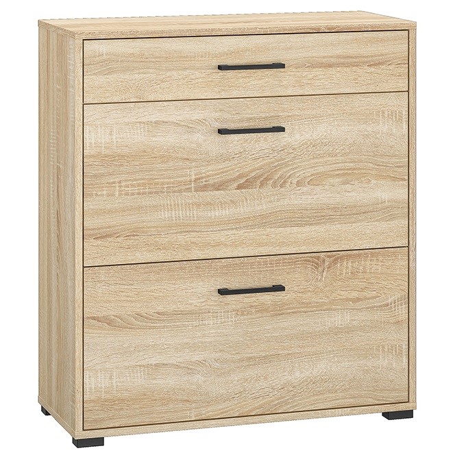 Szafka na buty to praktyczny mebel, który doskonale sprawdzi się w każdym przedpokoju. Wykonana z płyty laminowanej najwyższej jakości, jest odporna na codzienne uszkodzenia, a obrzeża ABS zapewniają trwałość i estetyczne wykończenie. Dzięki optymalnej pojemności szafka pomieści liczne pary butów, jednocześnie nadając wnętrzu nowoczesny charakter.