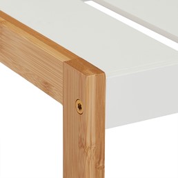 Szafka na buty Giselda to praktyczne rozwiązanie dla osób ceniących porządek i estetykę. Wykonana z bambusa, zapewnia trwałość i ekologiczny wygląd. Półki pomieszczą kilka par butów, a białe wykończenie nadaje jej lekkości i nowoczesnego charakteru.
