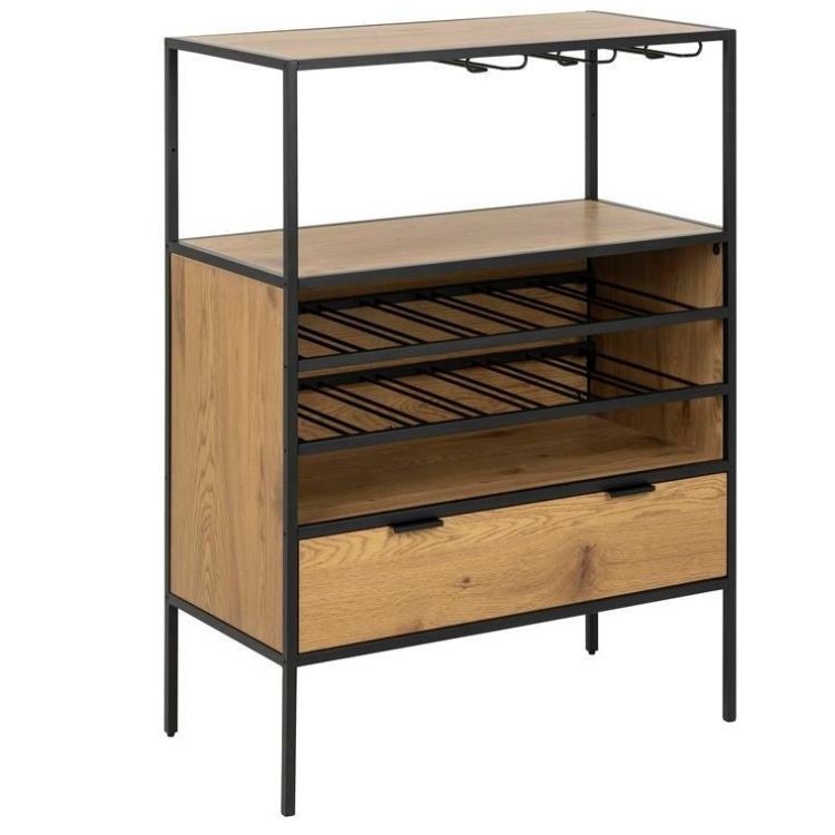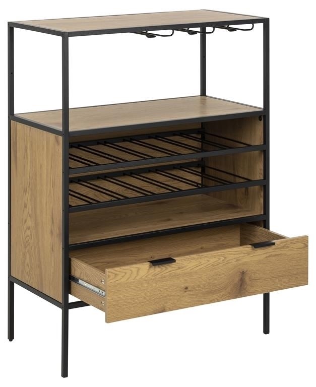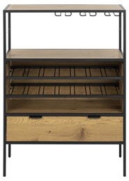 Szafka w kolorze naturalnego dębu będzie miała elegancki i klasyczny wygląd, który dobrze wpisuje się w różne style wnętrz. Czarne nogi mogą dodać nowoczesnego akcentu. Jej minimalistyczny design oraz funkcjonalność sprawiają, że jest idealnym rozwiązaniem dla miłośników wina i alkoholu. Wysokiej jakości płyta MDF lub lite drewno, co zapewnia trwałość i estetykę. Naturalny dąb, który dodaje ciepła i przytulności, a jednocześnie pasuje do wielu aranżacji.Czarne metalowe nogi, które nadają meblowi nowoczesny wygląd i stabilność.Idealna do jadalni, salonu lub kuchni. Może służyć jako wyjątkowy element wystroju oraz funkcjonalna przestrzeń do przechowywania alkoholu.