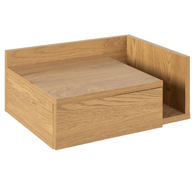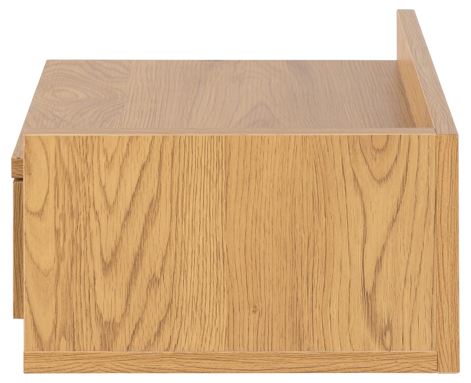 Szafka nocna Ashlan II w kolorze naturalnego dębu to doskonały wybór do sypialni, szczególnie w stylu skandynawskim lub nowoczesnym. Jej wisząca konstrukcja daje kilka korzyści, takich jak oszczędność miejsca oraz łatwość w utrzymaniu czystości pod szafką. Często tego typu meble charakteryzują się minimalistycznym designem, prostymi liniami i funkcjonalnością. Dąb naturalny jako materiał wykończeniowy nadaje meblowi elegancki i ciepły charakter, a jego trwałość sprawia, że mebel jest odporny na uszkodzenia i zarysowania. Szafka może być wyposażona w szuflady lub półki, co pozwala na przechowywanie książek, lampki nocnej czy innych drobiazgów.