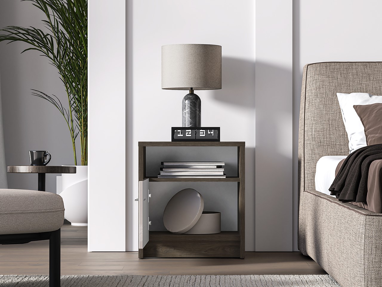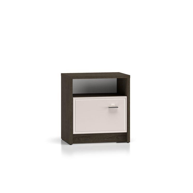 Szafka nocna z serii TOSCANIA to uzupełnienie każdej sypialni urządzonej w klasycznym stylu. Mała szuflada i otwarta półka umożliwiają przechowywanie najpotrzebniejszych przedmiotów w zasięgu ręki. Ciepłe wybarwienie drewna i delikatne detale podkreślają przytulny charakter mebla.