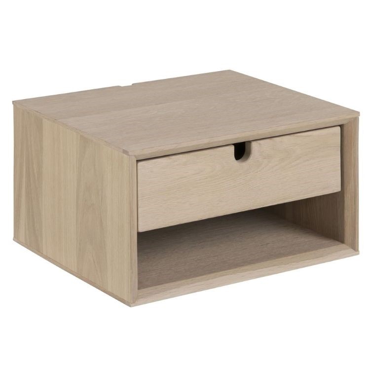 Szafka nocna Century w kolorze naturalnego dębu to elegancki i funkcjonalny dodatek do Twojej sypialni. Jej podwieszany design pozwala zaoszczędzić miejsce na podłodze, co jest szczególnie przydatne w mniejszych pomieszczeniach. Naturalny dąb, który jest nie tylko estetyczny, ale również trwały i łatwy do pielęgnacji. Naturalny dąb, który jest nie tylko estetyczny, ale również trwały i łatwy do pielęgnacji. Minimalistyczny i nowoczesny wygląd, który pasuje do wielu aranżacji wnętrz. Podwieszana konstrukcja sprawia, że szafka jest łatwa do zamontowania i pozwala na utrzymanie porządku. Tego typu szafki nocne są świetnym rozwiązaniem dla osób poszukujących funkcjonalnych i estetycznych mebli do swojej sypialni. Z pewnością dodadzą uroku i uporządkują przestrzeń.