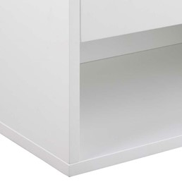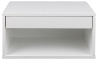 Szafka nocna Cholet dla miłośników minimalizmu. Wykonany z płyt MDF pokrytych białym lakierem. Posiada szufladę na metalowych prowadnicach. Szafka nocna Cholet mocowana jest do ściany.