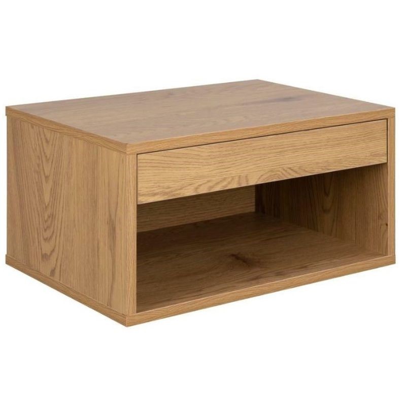Szafka nocna Cholet w kolorze dębu to świetny wybór do sypialni, szczególnie jeśli zależy Ci na eleganckim i nowoczesnym wyglądzie. Podwieszana konstrukcja szafki nie tylko oszczędza miejsce, ale także ułatwia sprzątanie pod łóżkiem. Nowoczesny, minimalistyczny lub skandynawski, w zależności od projektu. Solidne płyty meblowe, często wykończone okleiną drewnopodobną, co zapewnia estetyczny wygląd i trwałość. Dąb, który dodaje ciepła i przytulności do wnętrza. Podwieszenie szafki sprawia, że pomieszczenie wydaje się większe. Unikalny wygląd, który może stać się centralnym punktem w sypialni.