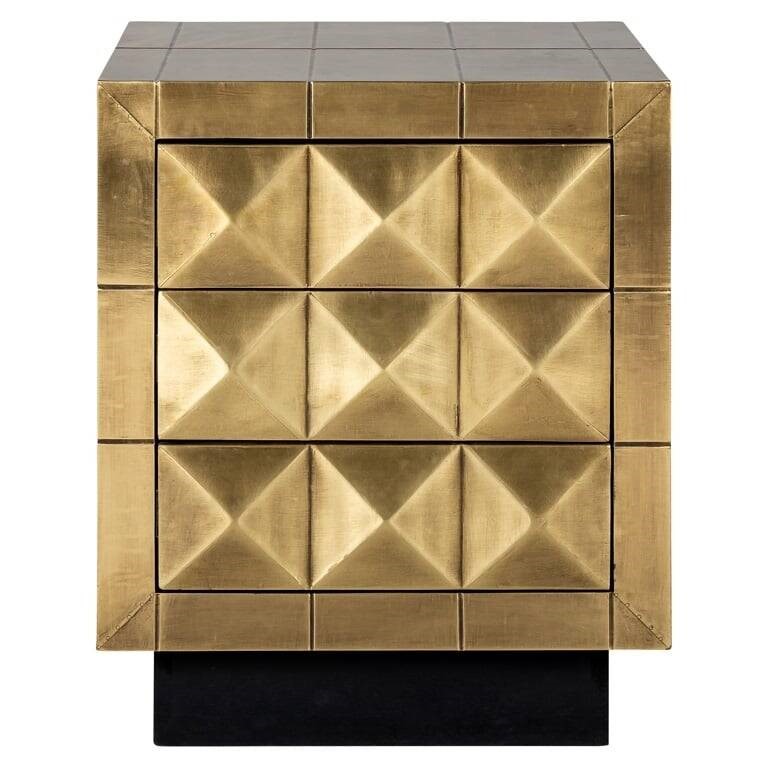 Szafka nocna COLLADA to wyjątkowy element wystroju, który łączy w sobie elegancję i funkcjonalność. Całość wykonana z mosiądzu oraz eleganckiej szczotkowanej złotej płyty MDF, stanowi doskonałe uzupełnienie wnętrz nowoczesnych oraz rustykalnych.