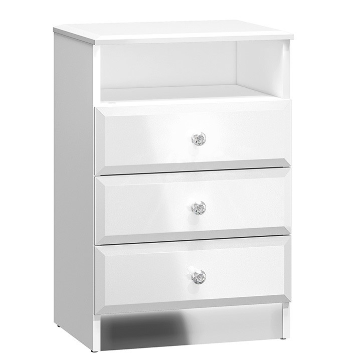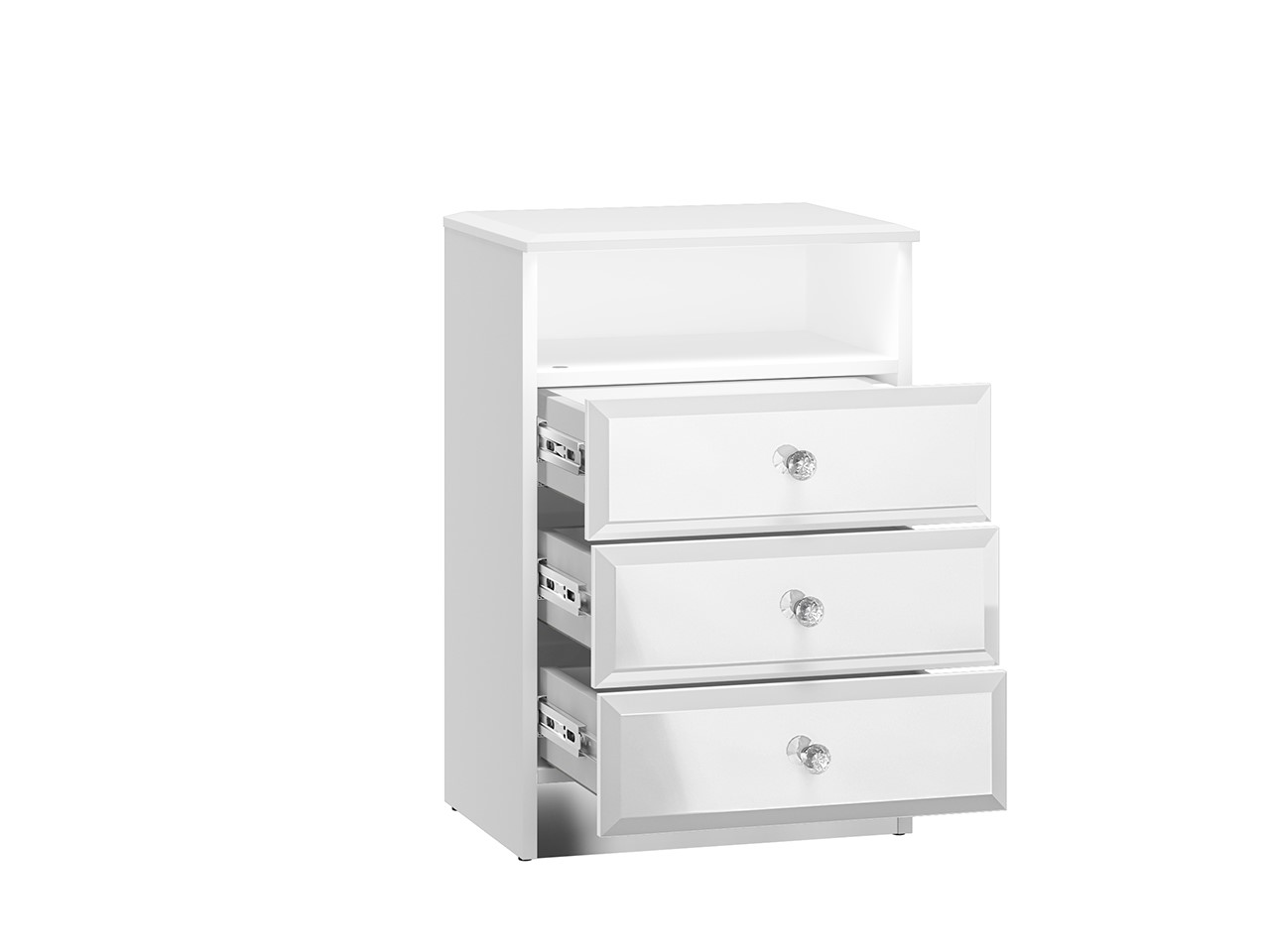 Szafka nocna Glamour 07 to kompaktowy mebel o wyrazistym charakterze. Wykonana z odpornej płyty laminowanej i wykończona trwałym obrzeżem ABS, świetnie sprawdza się w codziennym użytkowaniu. Jej pełny wysuw szuflady zwiększa wygodę, a elegancka forma idealnie wpisuje się w nowoczesne aranżacje sypialni.