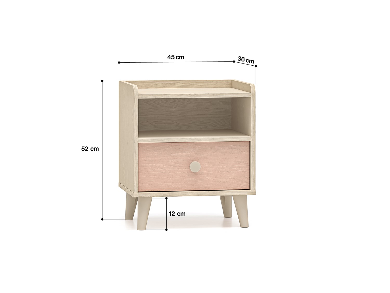 Szafka nocna Mevel 10 to praktyczny dodatek do łóżka, oferujący miejsce na lampkę nocną, książkę czy inne drobiazgi. Jej solidne wykonanie gwarantuje długotrwałe użytkowanie.