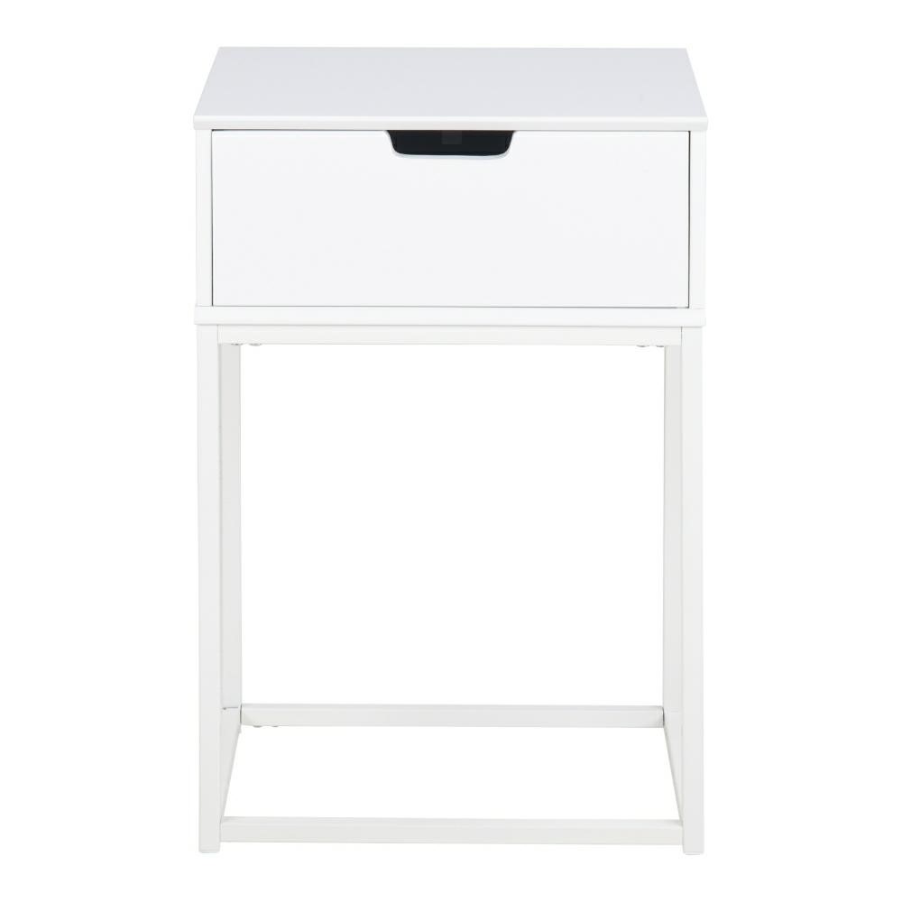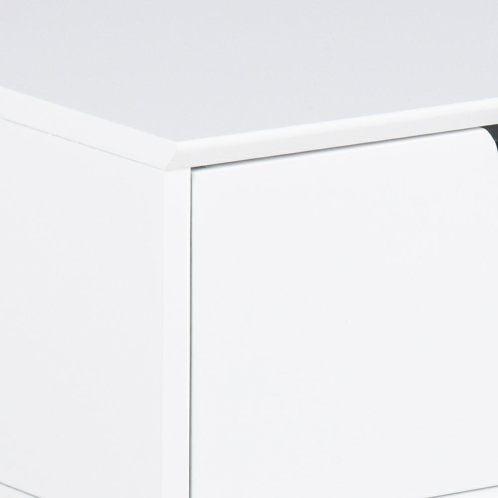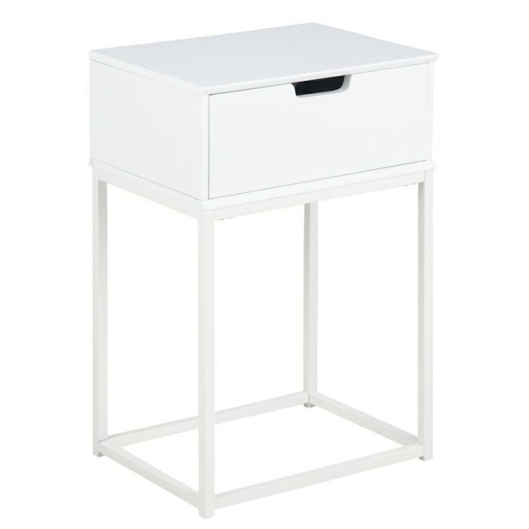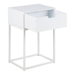 Szafka nocna Mitra w kolorze białym to elegancki dodatek do każdej sypialni. Szafka posiada prostą, neutralną formę, co sprawia, że łatwo wkomponuje się w różne style wnętrz, od nowoczesnych po klasyczne. Posiada przynajmniej jedną szufladę lub półkę, co pozwala na przechowywanie drobnych przedmiotów, takich jak książki, okulary czy inne akcesoria na noc. Biała kolorystyka nadaje lekkości i świeżości, a jednocześnie pasuje do różnych odcieni ścian oraz innych mebli. Nowoczesny design, lub klasyczne linie, w zależności od preferencji. Może być używana jako stoliczek nocny do postawienia lampki, budzika czy szklanki wody.