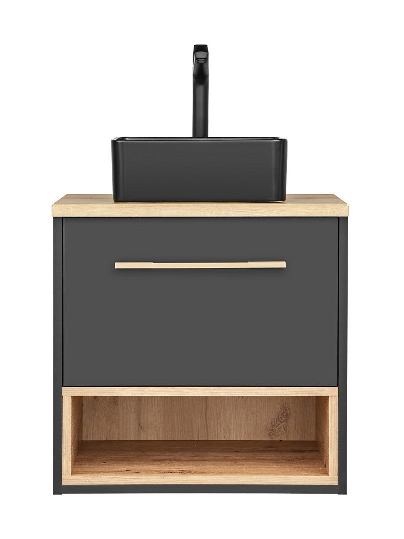 Kolekcja Borneo to nowoczesny i funkcjonalny zestaw mebli łazienkowych łączący ciemnoszare corupy z drewnianymi wstawkami. W kolekcji znajdują się szafki podumywalkowe w czterech rozmiarach. W kolekcji znajduje się również szafka wysoka, szafka niska z koszem na bieliznę oraz szafki z lustrami, dopasowane wymiarami do szafek podzlewowych. Drzwi i szuflady z cichym domykaniem i drewnianymi uchwytami. Borneo to kolekcja mebli łazienkowych o niepowtarzalnych wzorach i starannie dobranej kolorystyce.