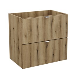 Szafka pod umywalkę NOVA wyróżnia się prostymi formami oraz eleganckim wykończeniem. Gładkie fronty, pozbawione dodatkowych ryflowań, podkreślają nowoczesny charakter mebla, a wykończenie w naturalnym odcieniu drewna Dąb Coast Evoke dodaje wnętrzu ciepła i przytulności. Wykonana z wysokiej jakości materiałów, szafka zapewnia trwałość i odporność na wilgoć, co jest kluczowe w łazienkowym środowisku. Solidne płyty laminowane oraz staranne wykończenie gwarantują długowieczność i estetyczny wygląd przez wiele lat. Szafka pod umywalkę NOVA oferuje przestronne szuflady, idealne do przechowywania kosmetyków oraz innych niezbędnych akcesoriów łazienkowych. Ergonomiczny układ wnętrza umożliwia wygodne przechowywanie, pomagając utrzymać porządek i organizację w łazience.