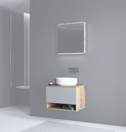 Szafka pod umywalkę AVIOLA 60/1S to funkcjonalny i stylowy element wyposażenia łazienki. Wykonana z trwałej płyty meblowej laminowanej, charakteryzuje się eleganckim wykończeniem. Korpus w kolorze dąb artisan doskonale komponuje się z matowym frontem w odcieniu cashmere, tworząc nowoczesny i estetyczny wygląd. Dzięki zastosowaniu zawiasów i prowadnic soft close, użytkowanie szafki jest komfortowe i ciche. Idealna do niewielkich łazienek, łączy praktyczność z atrakcyjnym designem.