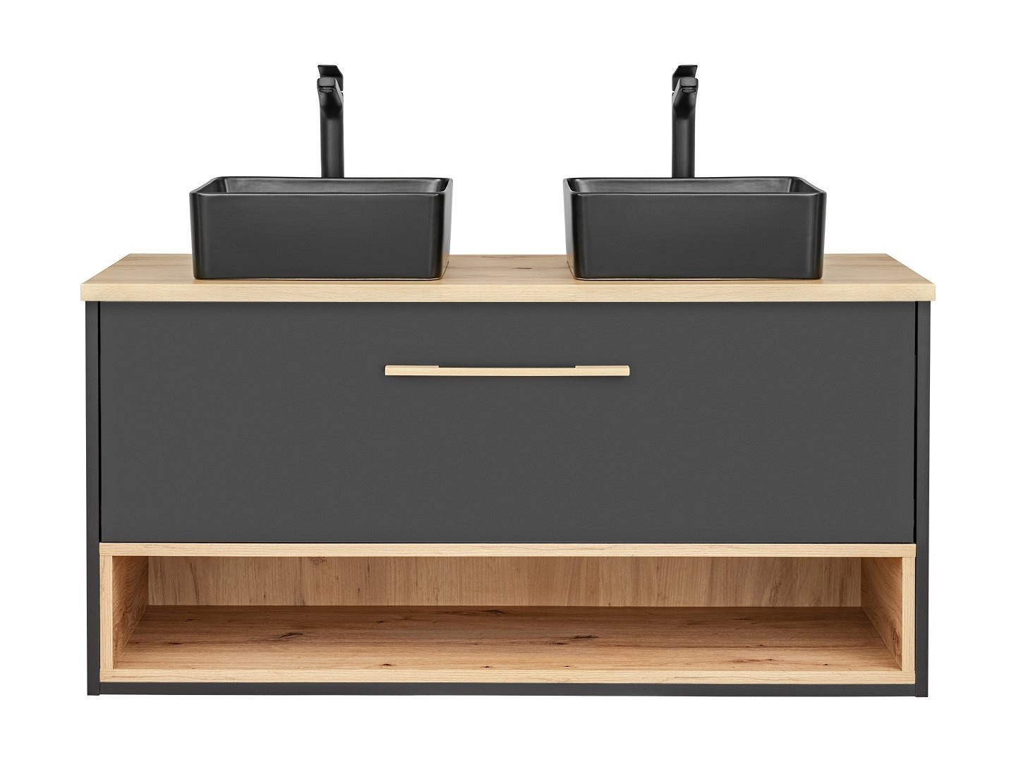 Szafka podumywalkowa Borneo o szerokości 80 cm to produkt charakteryzujący się nowoczesnym designem i wysoką funkcjonalnością. Wyposażona jest w praktyczną szufladę, która zapewnia dodatkowe miejsce na kosmetyki i akcesoria potrzebne w każdej łazience. W dolnej części znajduje się otwarta półka idealna na ręczniki. Szafy i fronty szafek wykonane są z wysokiej jakości laminatu, dzięki czemu meble są odporne na ścieranie, zarysowania, uderzenia, opary oleju i wilgoć.